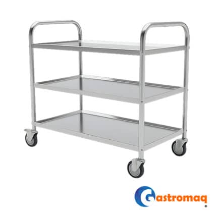 - El Carro Transportador 3 Niveles Acero Gastromaq es la solución ideal para el traslado eficiente de utensilios, vajilla o alimentos en restaurantes, hoteles, casinos y servicios de catering. Fabricado completamente en acero inoxidable, ofrece máxima resistencia, durabilidad e higiene, soportando el uso intensivo diario sin oxidarse ni deteriorarse.
