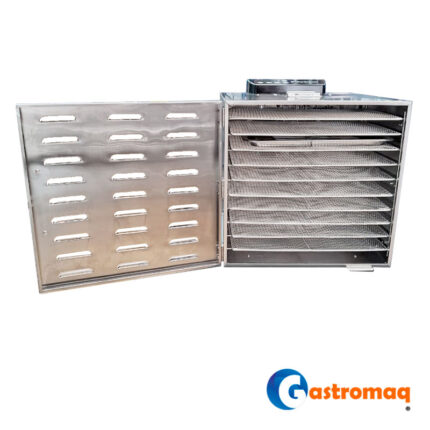 - Gracias a su gran capacidad y estructura robusta, optimiza los tiempos de producción sin sacrificar calidad. Fabricado con materiales resistentes y de fácil limpieza, es una solución confiable para uso intensivo en restaurantes, cocinas industriales y negocios especializados en alimentos deshidratados.