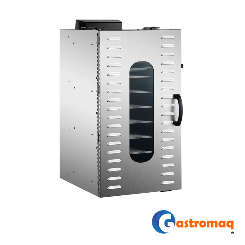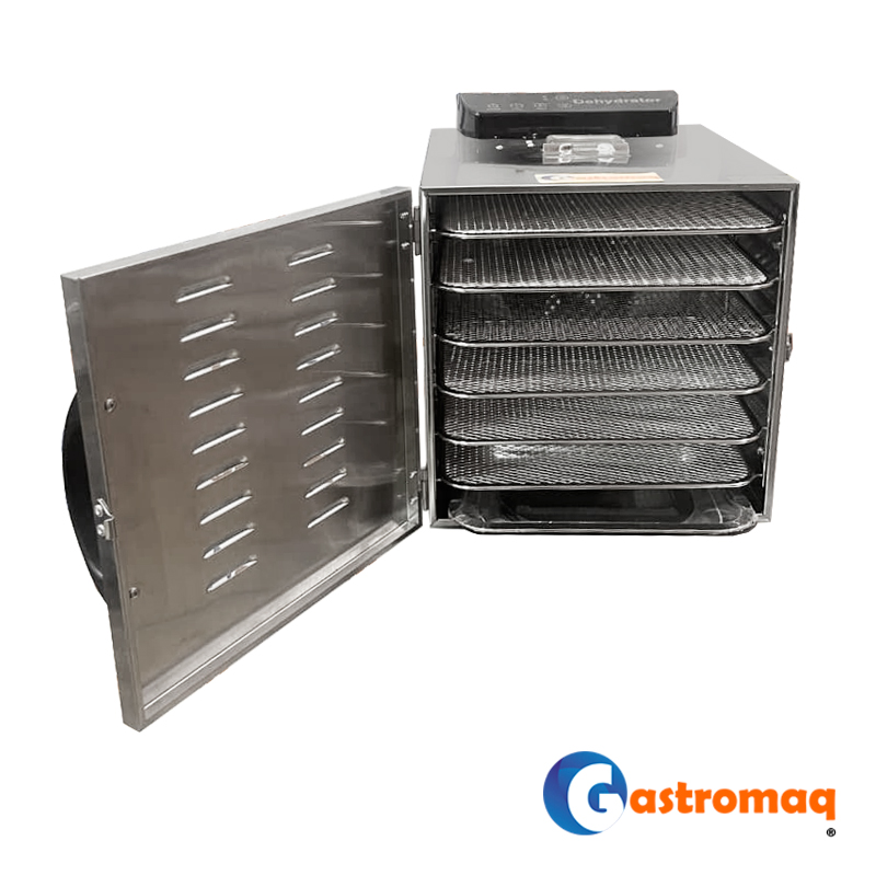 - El deshidratador sobremesa Gastromaq de 6 bandejas está diseñado para la deshidratación eficiente y controlada de alimentos en entornos gastronómicos y de producción artesanal. Es ideal para frutas, verduras, hierbas, carnes, hongos y otros productos que requieren un secado uniforme y constante.