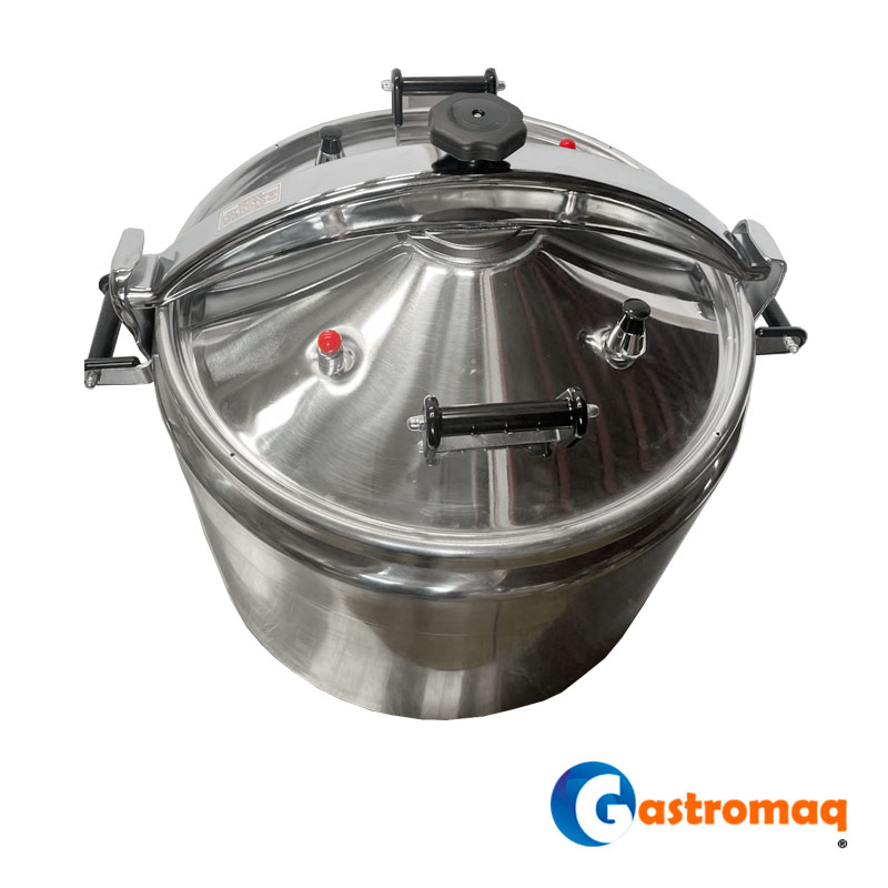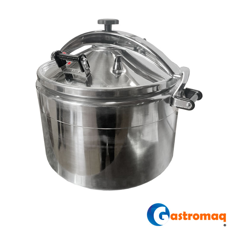 - La Olla a Presión Gastromaq de gran capacidad es ideal para cocinas profesionales que requieren alto rendimiento y eficiencia en la preparación de grandes volúmenes de alimentos.