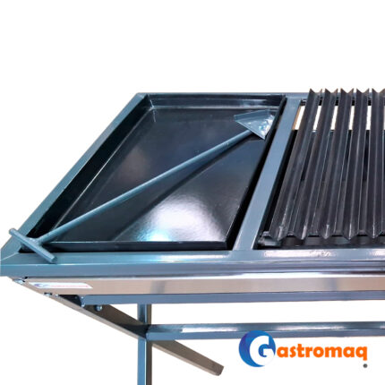 - Combina una parrilla tradicional para asar carnes, vegetales y otros ingredientes, junto con una plancha churrasquera que permite sellar cortes y preparar alimentos con una jugosidad y sabor excepcionales.