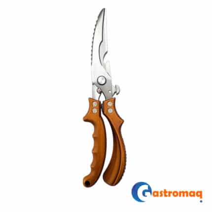 - Es una tijera de trinchado diseñada específicamente para el despiece de aves. A diferencia de una tijera de cocina común, este modelo cuenta con una estructura reforzada y una curvatura en las hojas que facilita el corte de cartílagos y huesos pequeños.